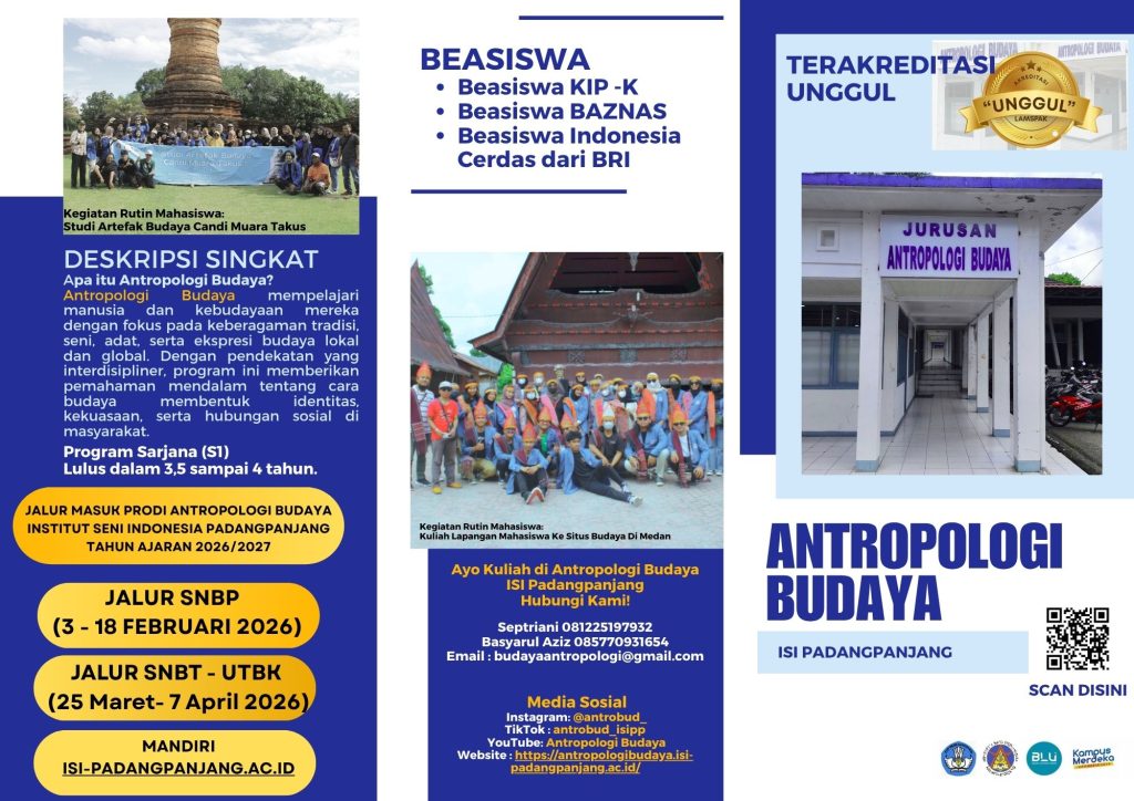 Karya MahasiswaPROGRAM STUDI ANTROPOLOGI BUDAYA Toponimi Daerah Sumatera Barat (Payakumbuh) Click here Kajian Tanda dan Makna (Semiotika) dalam Pakaian Adat Minangkabau Read More Toponimi Daerah Sumatera Barat (Solok) Read More Tugu Tabuik Kota Pariaman Read More